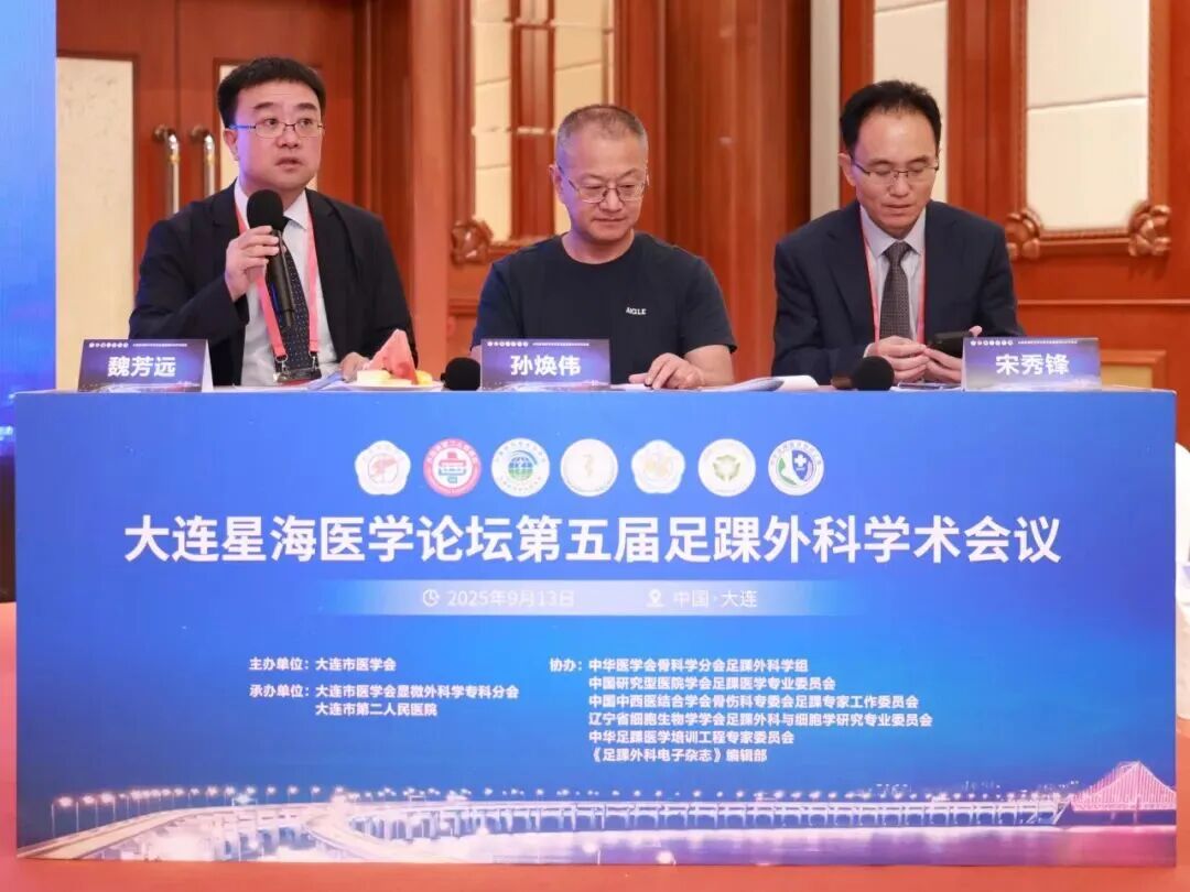 中华医学会手外科学分会委员、辽宁省医学会手外科学分会主任委员、辽宁省医学会显微外科学分会候任主任委员、中国医科大学附属盛京医院手足踝外科学科带头人田峰,沈阳医学院附属中心医院足踝外科主任崔军,辽宁省医学会运动医疗学分会委员、大连市旅顺口区中医医院副院长于振和,中国医科大学附属盛京医院小儿骨科主任医师王恩波,大连理工大学附属中心医院(大连市中心医院)创伤及组织修复科主任鲁明,辽宁省医学会显微外科学分会副主任委员、辽宁省医学会手外科学分会常务委员、大连市医学会显微外科学专科分会主任委员、大连医科大学附属第二医院手足显微外科主任梁海东,辽宁省医学会显微外科学分会常务委员、大连市医学会显微外科学专科分会委员、大连理工大学附属中心医院(大连市中心医院)手足外一科主任张铁慧,辽宁省医学会显微外科学分会常务委员、辽宁省医学会手外科学分会常务委员、沈阳市骨科医院手足显微外科主任侯宝贤,阜新市人民医院(阜新市妇女儿童医疗中心)骨科主任王国军,中华医学会运动医疗分会足踝工作委员会委员、北京中医药大学第三附属医院手足外科主任魏芳远,辽宁省医学会手外科学分会副主任委员、大连市医学会显微外科学专科分会副主任委员、大连理工大学附属中心医院(大连市中心医院)手足外二科主任孙焕伟,中华医学会骨科学分会足踝外科学组青年委员会副主任委员、辽宁省医学会手外科学分会常务委员、大连市医学会显微外科学专科分会副主任委员、大连市第二人民医院手足踝一体化诊治中心学科带头人宋秀锋担任嘉宾主持。与会专家深入剖析足踝创伤与骨折诊治、关节置换与畸形矫正、软组织与慢性疾病治疗、数字化与微创技术应用、康复治疗及体系建设等内容,为足踝外科领域疾病精准诊疗、手术技术创新、康复方案优化与学科高质量发展建言献策。
